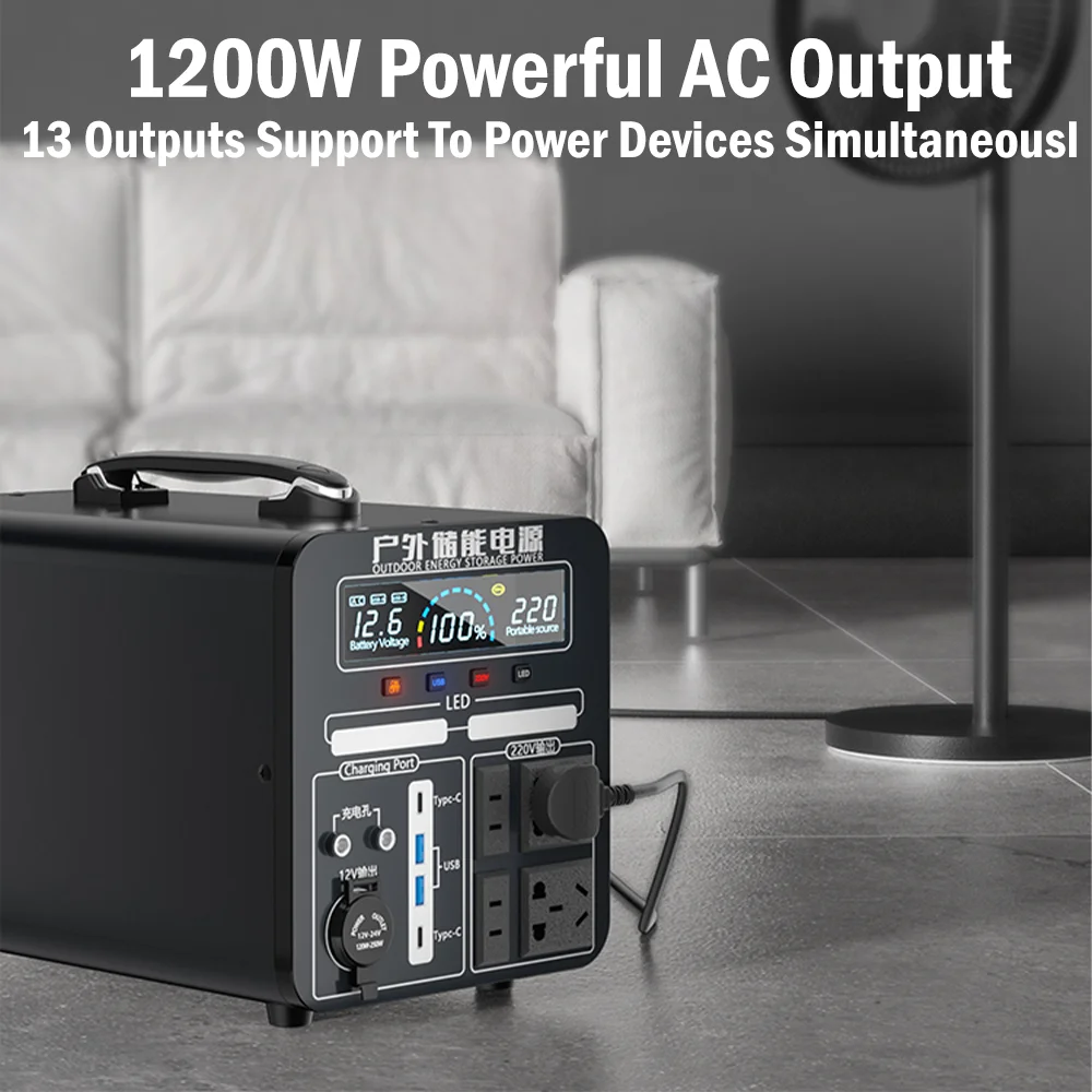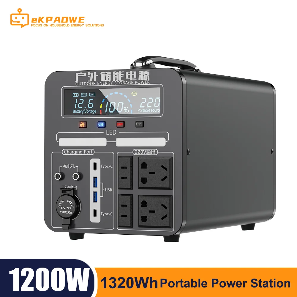 200-240V 1200W Solar Generator 330000mAh 1320Wh Portable Power Station Pure Sine Wave for Home Car Refrigerator Drone Laptops