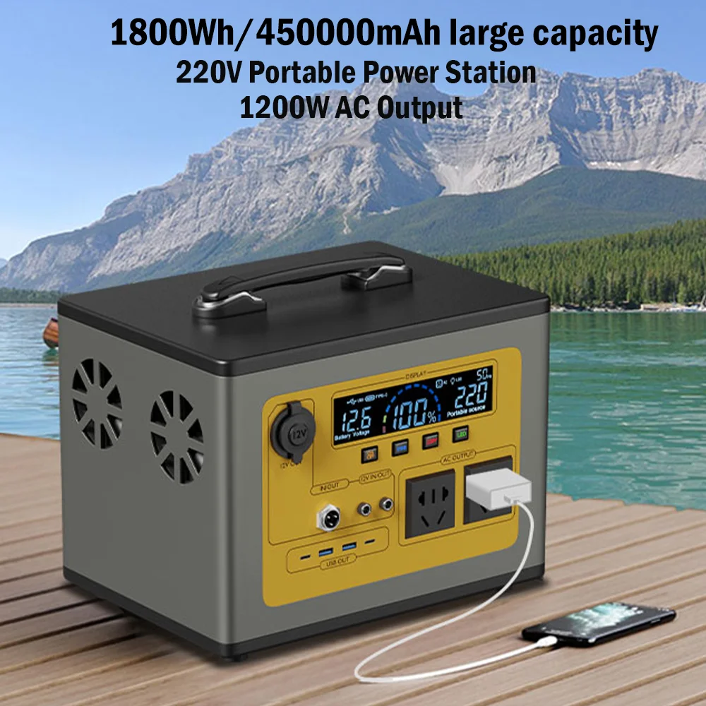 220V - 240V 1320Wh Power Station Protable Power Bank 1200W 450000mAh Lifepo4 Battery With EU Plug Fast Charging Solar Generator