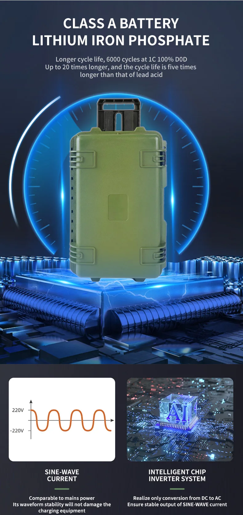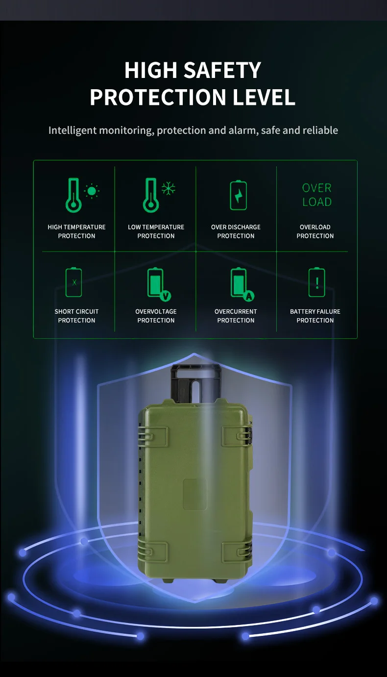 The product is an smart storage battery with LiFeCoPO4 lithium-ion batteries for mobile power