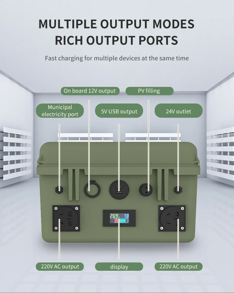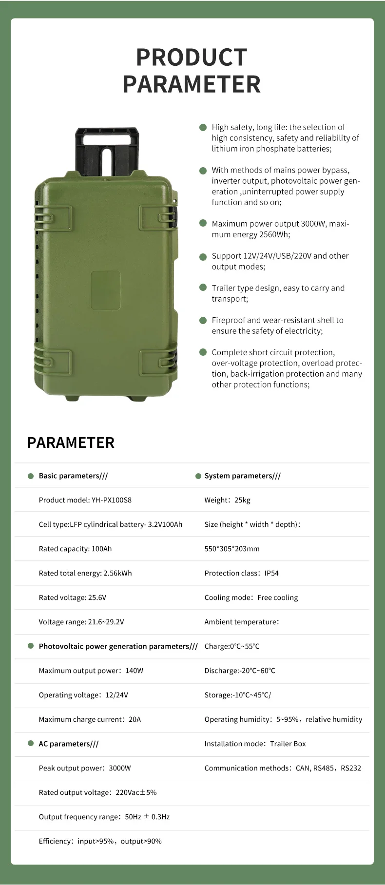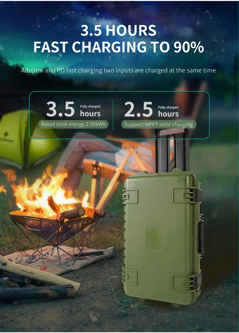 25.6V/100Ah Portable Outdoor Mobile Power Lifepo4 Battery BMS system protection support fast charging multiple output methods