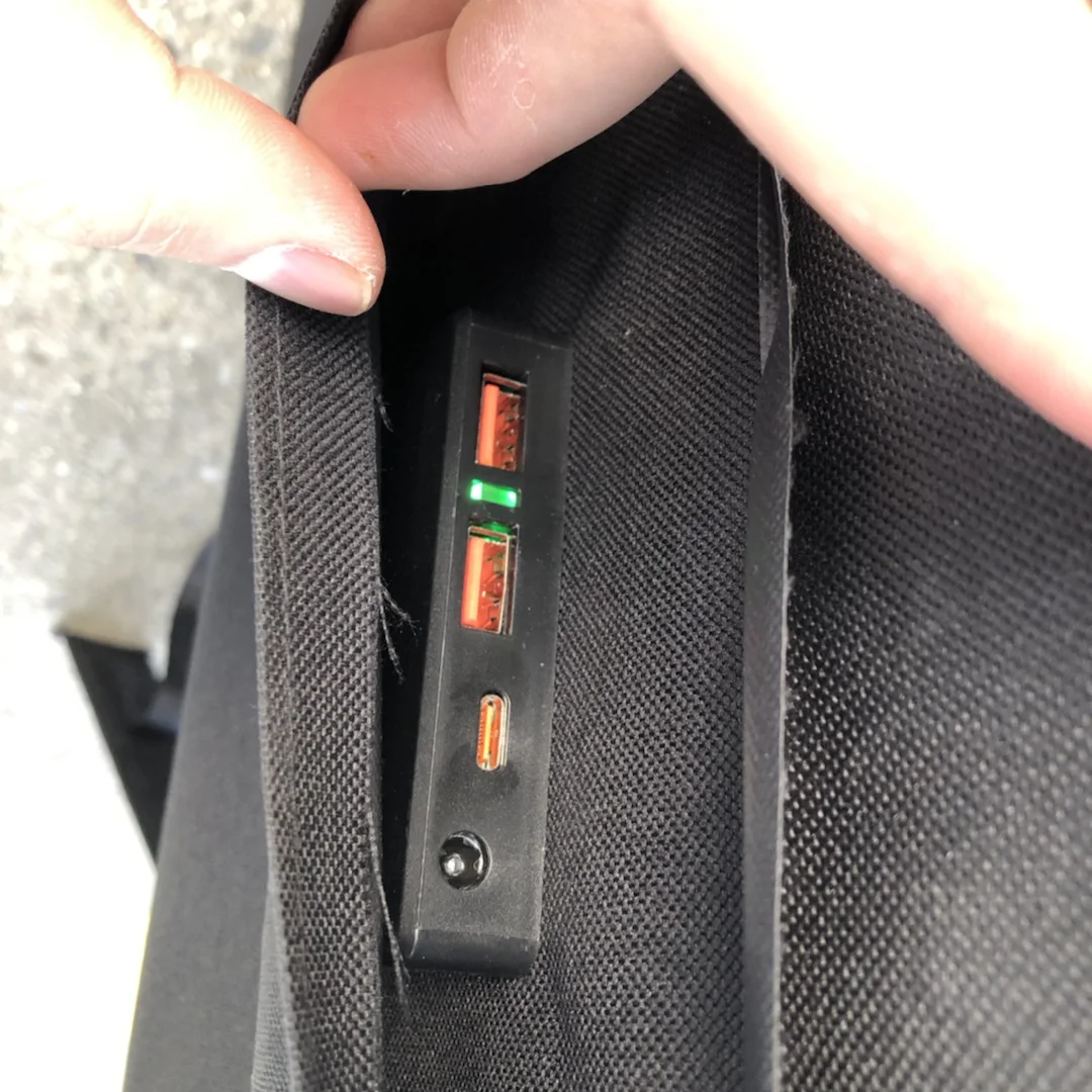 [IP65 Waterproof] With its IP65 waterproof technology, the sturdy canvas surface and stitched solar panels can withstand different weather conditions. Additional hooks make it ideal for attaching to the pack while hiking or walking.
