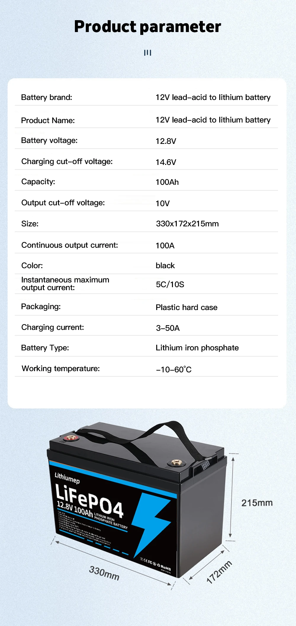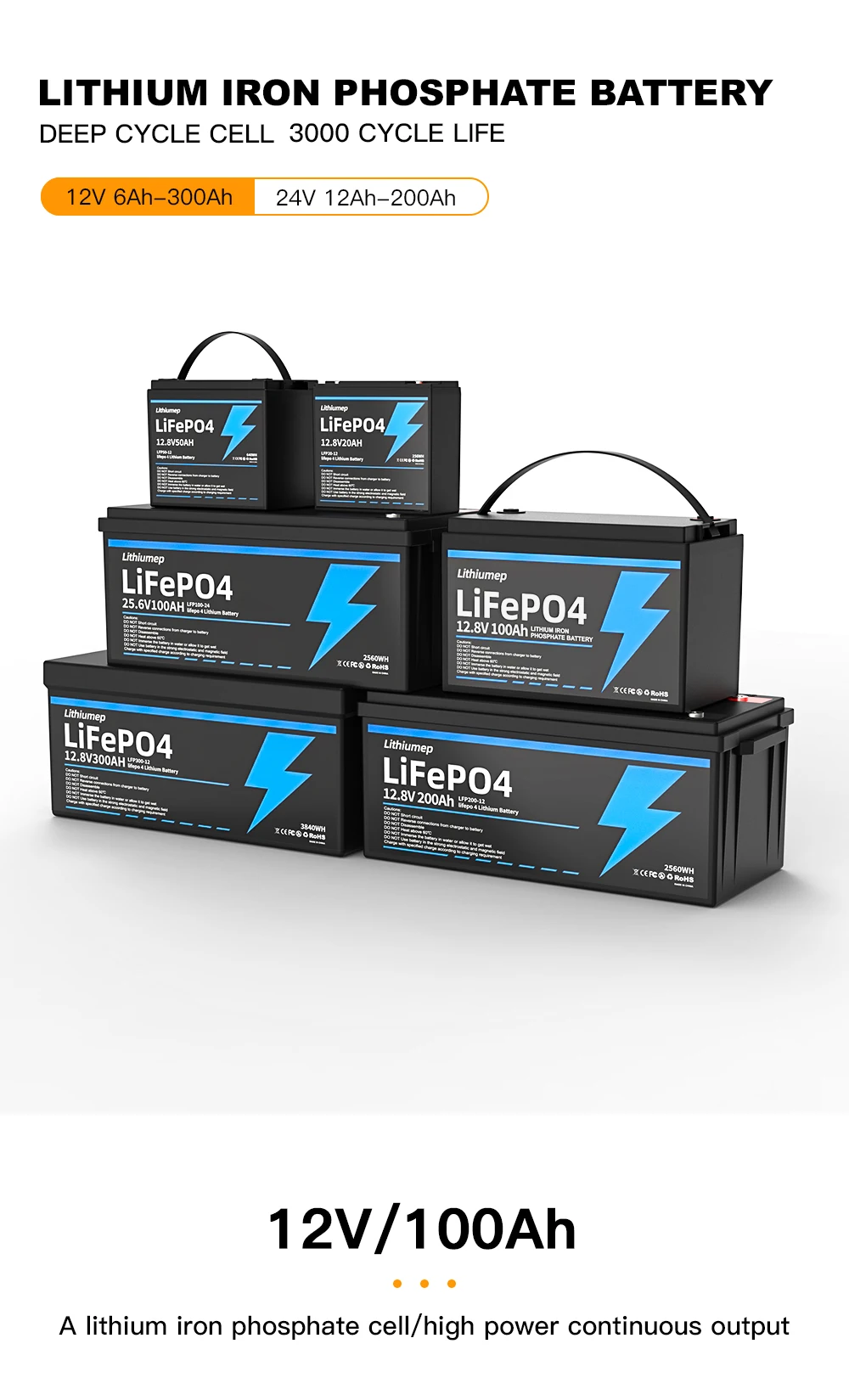LiFePO4 Battery 12V20AH-12V300AH Lithium Iron Phosphate Battery Higher power Better safety Suitable for many applications
